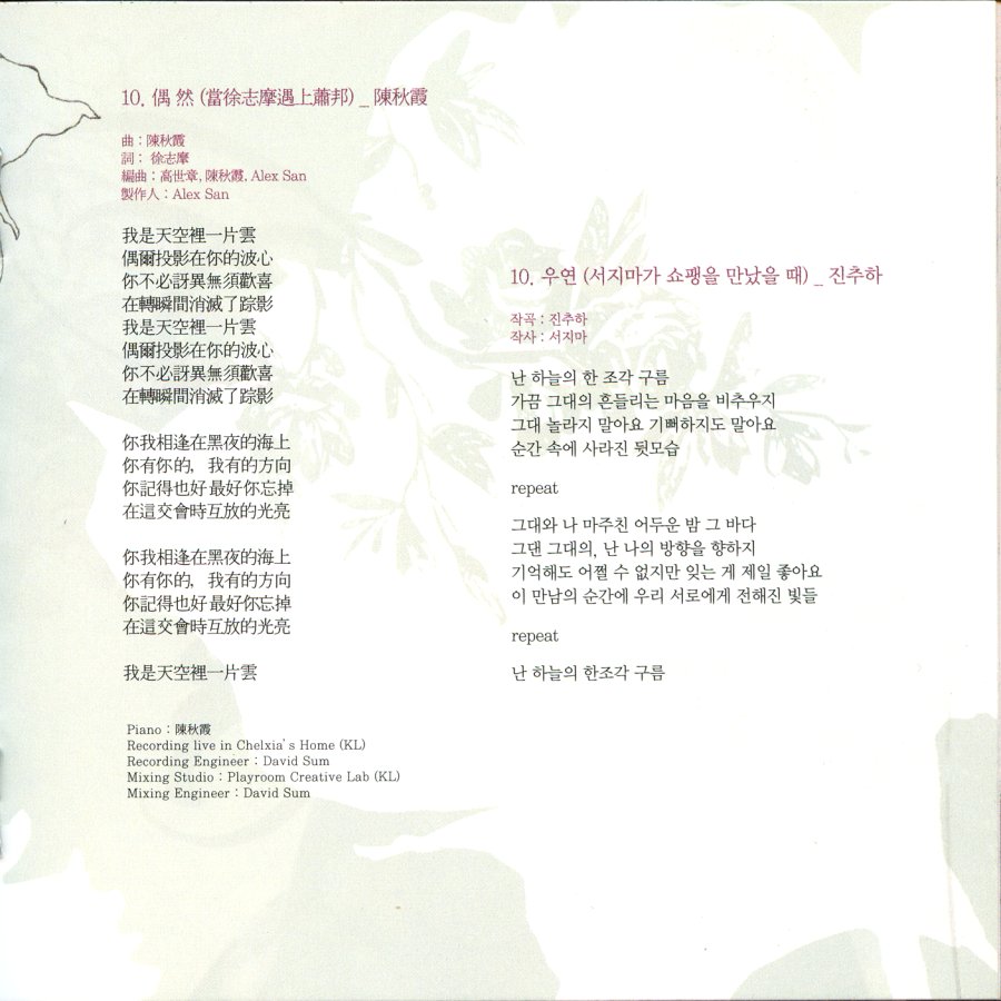 A10. 偶然 (當徐志摩遇上蕭邦) 2:49 曲: 陳秋霞 詞: 徐志摩 |
