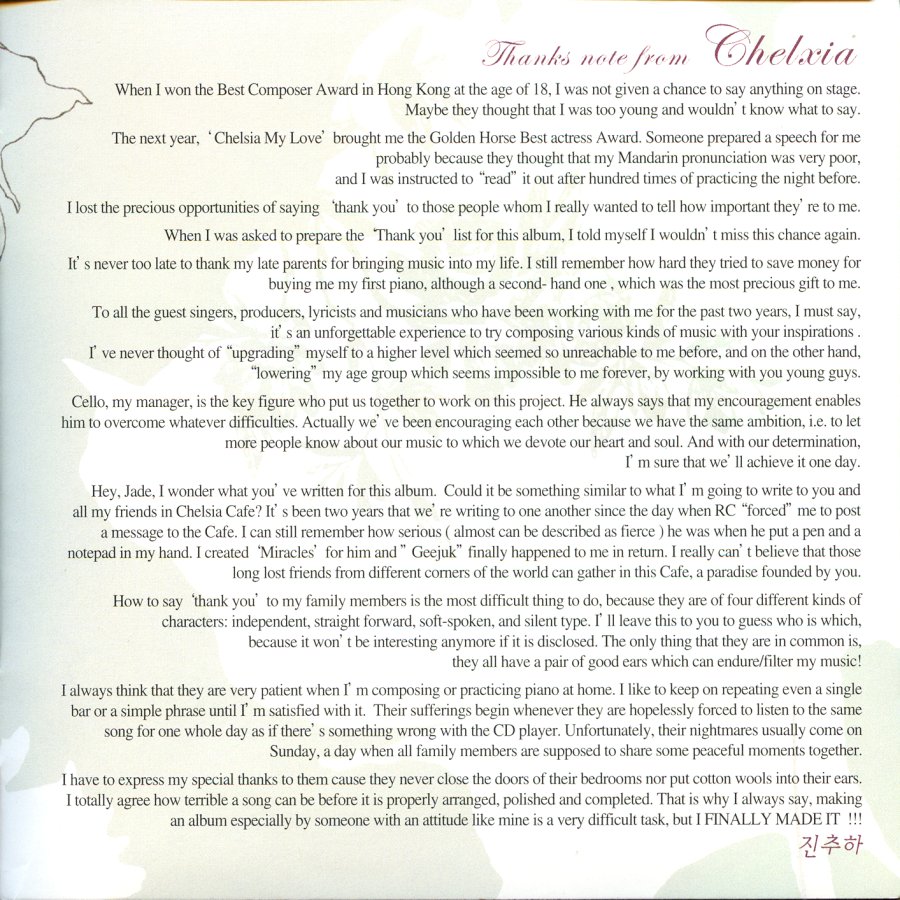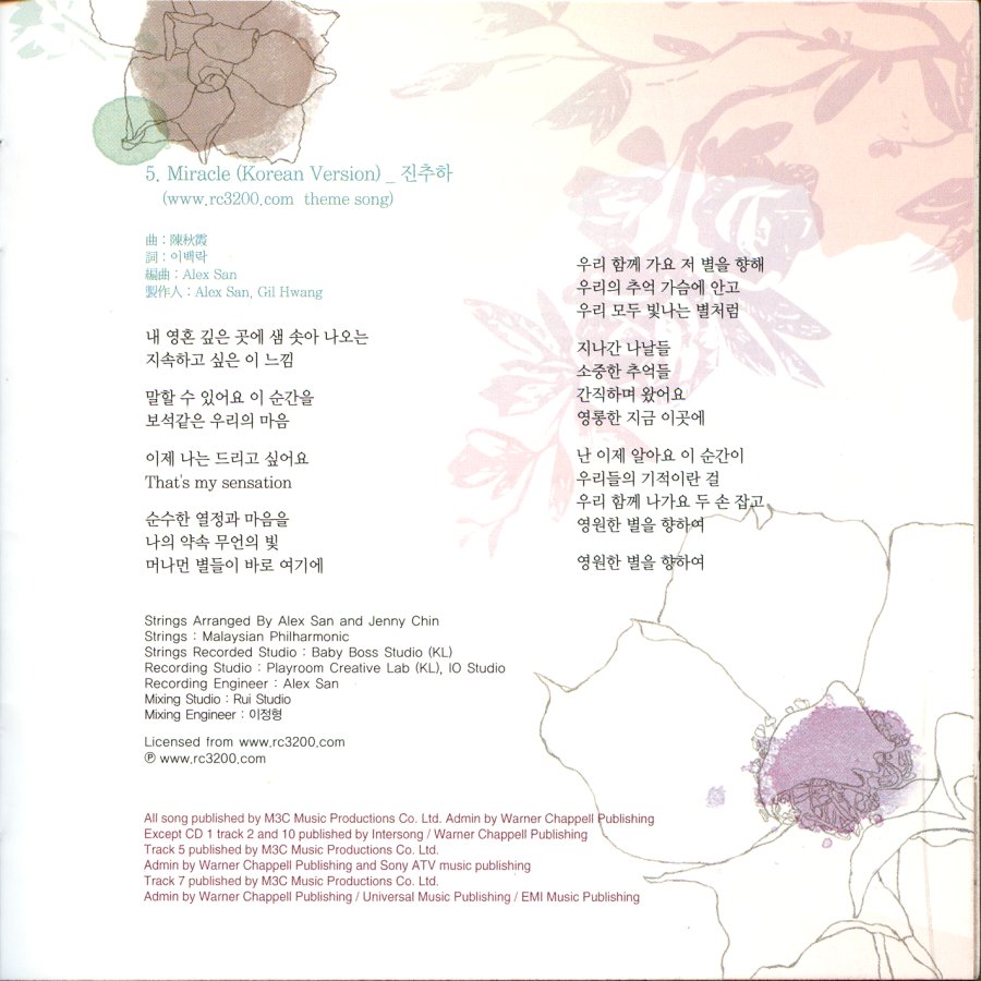 | B5. Miracle (Korean Version) 4:41 曲: 陳秋霞 詞: Baek Rak Lee |